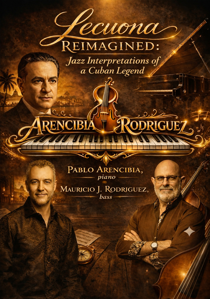 Pianist Pablo Arencibia and bassist Mauricio J. Rodriguez pay homage to legendary Cuban composer Ernesto Lecuona, re-imagining his iconic compositions as contemporary jazz masterworks. Lecuona famously blended Spanish traditions, African folklore, and European classical music – a legacy that resonates with Tampa-based Arencibia and Rodriguez, who share deep personal and geographical ties to the composer’s history. This performance honors Lecuona’s boundary-shattering spirit and pursuit of musical freedom. Joining the ensemble for the special concert are guest artists Dimas Sanchez (drums), Lemay James (violin), and Carlos Navarro (percussion) for an evening of sophisticated Afro-Cuban jazz and cross-cultural expression.