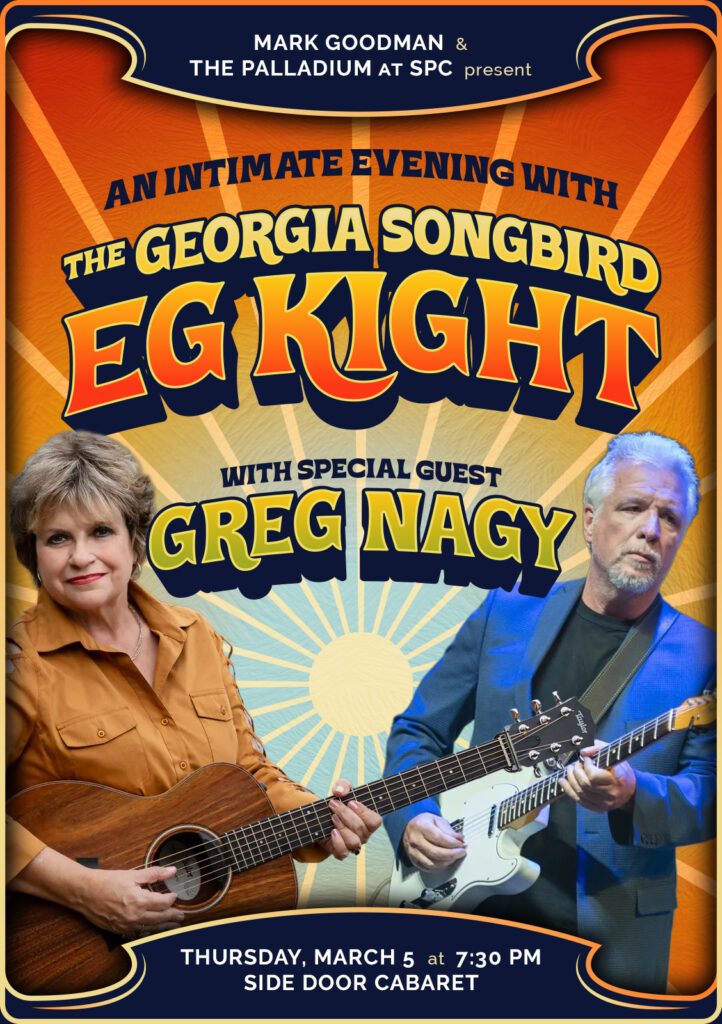 Georgia Songbird EG Kight is joined by special guest Greg Nagy in the Side Door Cabaret for an intimate evening of soulful blues. Renowned for its warm acoustics and inviting atmosphere, the Side Door is the perfect venue for a night of authentic, heartfelt music. This performance offers a rare opportunity to experience two acclaimed blues artists in a close, listening-room setting.