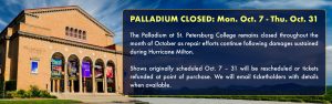 Whether in the main concert hall, Hough Hall with its unsurpassed new sound system, or kicking back in the intimate Side Door Cabaret, the historic Palladium Theater is consistently ranked as one of Tampa Bay’s best, most affordable venues for classical, jazz, blues, theatre, opera, Celtic, comedy, dance, educational, literary, community events, and more. The Palladium, located in downtown St. Petersburg’s cultural center, is part of what makes Tampa Bay great.