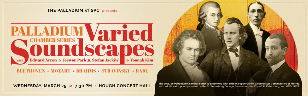 Stefan Jackiw, was a special guest violinist with The Florida Orchestra last season. He’s making his chamber series debut along with his wife, clarinetist Yoonah Kim. The other married couple on the program, Edward Arron and Jeewon Park, are series regulars and well known to Palladium audiences.
